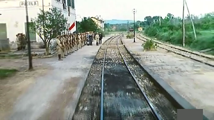 I binari non sono più presenti da anni, ma il tracciato è ancora molto evidente, con le identiche curvature che si vedono nel film. Anche la sagoma dei monti che si vedono sullo sfondo è la stessa, anche se nelle mie foto a causa di alberi e luce non si riesce a vedere.