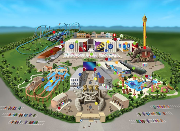 La mappa del parco divertimenti inaugurato nel 2014, e …il suo nuovo set western! - … continuavano a chiamarlo Trinità (1971)