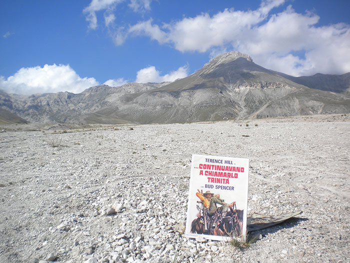 Le foto qui sopra si riferiscono alla location dove Trinità e Bambino a cavallo avvistarono il carro dei contadini, e si prepararono a rapinarli, salvo poi aiutarli.. Siamo vicini alla strada asfaltata.