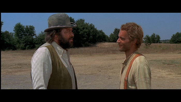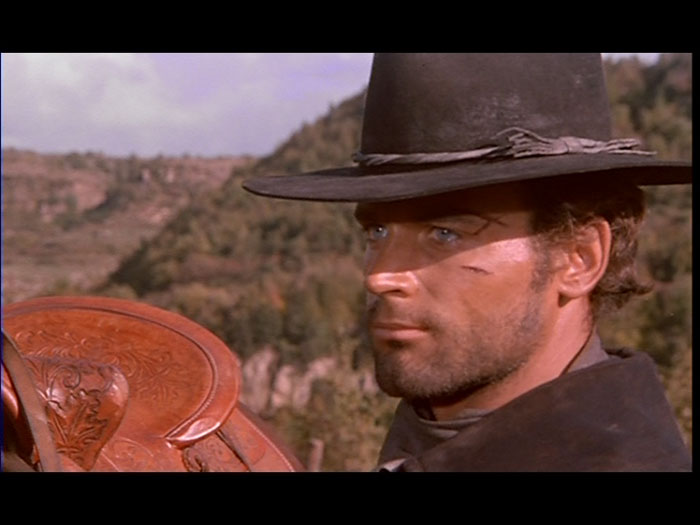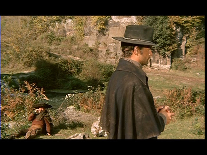 Dietro Django (Terence Hill) si intravedono le cascate.