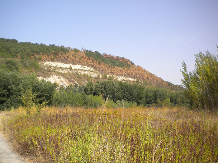 Il monte “scende” uguale, e porta i segni della cava, oggi non più presente.