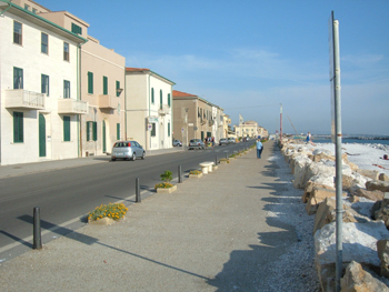 Percorrendo un percorso virtuale arriviamo a Marina di Pisa da sud, dalla strada che la collega a Tirrenia. E' proprio su questa strada che costeggia le dune del mare e che collega le due cittadine costiere, che troviamo alcune inquadrature utilizzate per gli allenamenti di Giorgione e di Rosco Dunn prima della sfida finale.