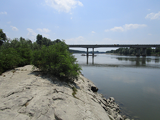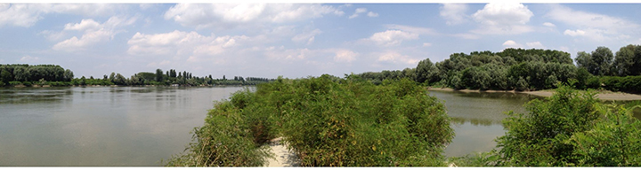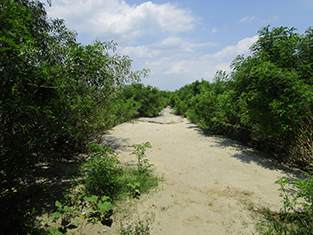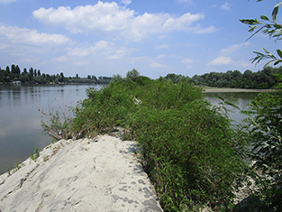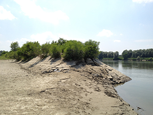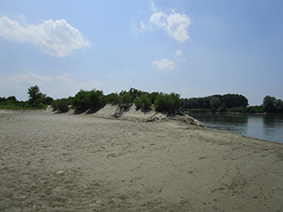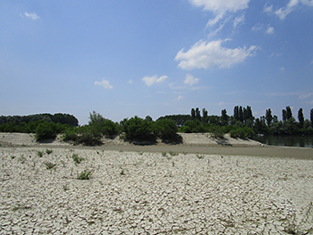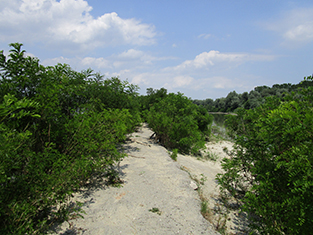 Il “pennello” visto di lato. Al momento della mia visita (estate), questo lato era in secca. L’altro è impossibile lo diventi in quanto ci passa il letto principale del Po.