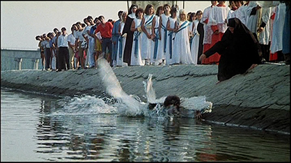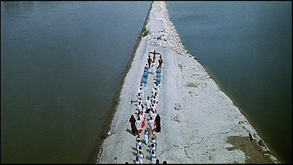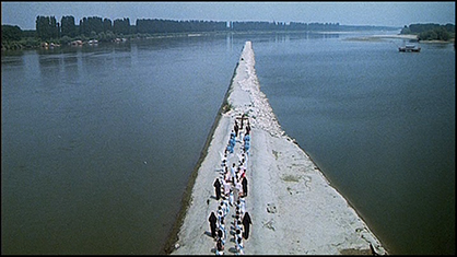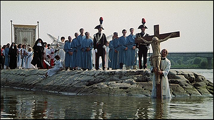 La scena della processione vide il suo culmine sul fiume Po, in un “pennello” che si vede partire da sotto il ponte di Guastalla. Il Po in quel punto divide l’Emilia Romagna dalla Lombardia. Il citato “pennello” come mi diranno persone del luogo, altro non era che un argine artificiale che serviva per indirizzare l’acqua del fiume.