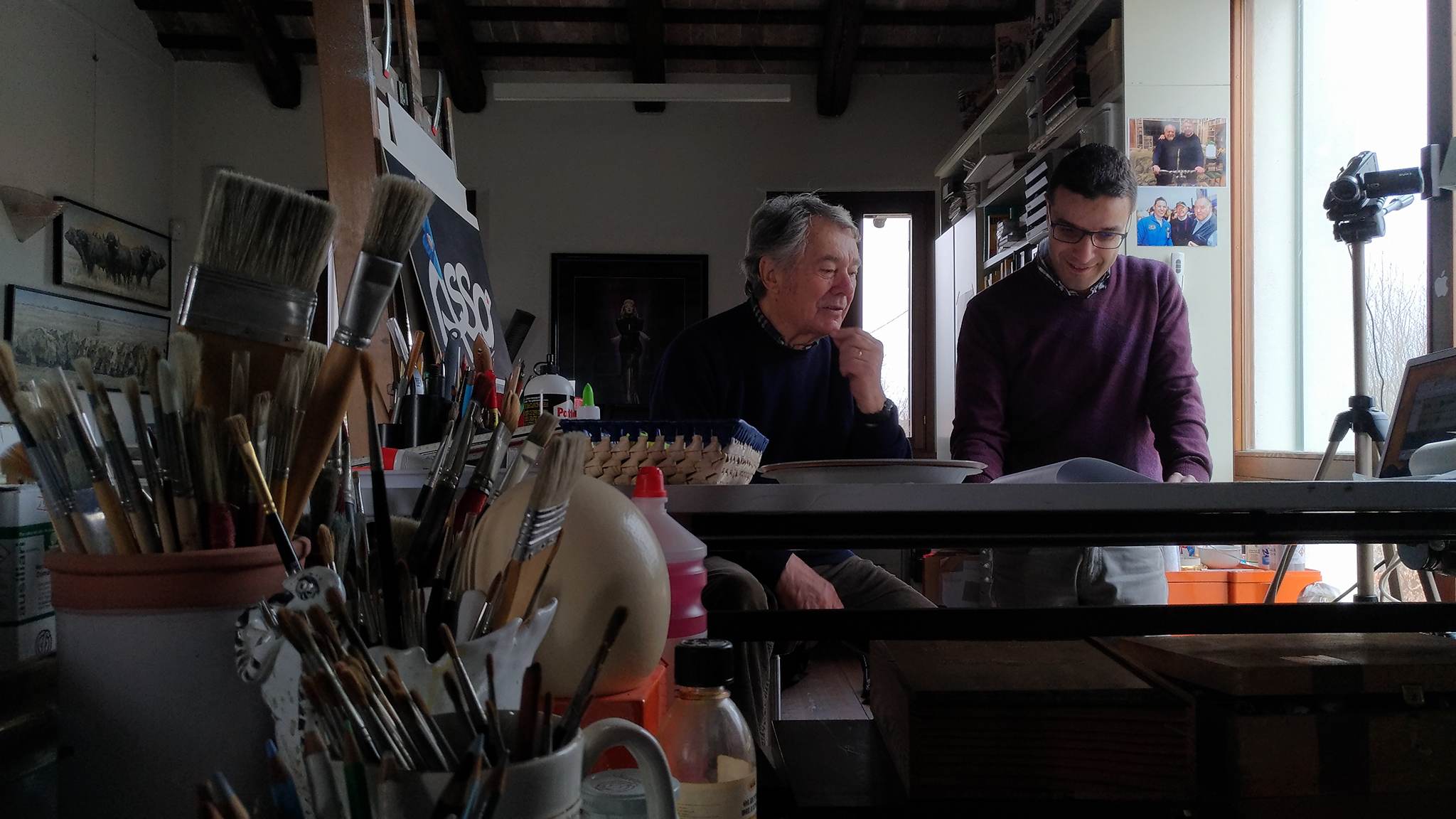 L'accoglienza di Casaro ci fa sentire a casa con un caffè e una chiacchierata di benvenuto, anche se le pareti adornate dai suoi dipinti ci fanno ricordare la realtà unica al mondo nella quale stiamo accedendo.