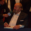 Passano alcuni minuti e si comincia a vedere un po’ di movimento vicino alla porta d’ingresso; ma è un falso allarme. Ancora un po’ di pazienza e… finalmente l’attesa è finita!! La sala è in tripudio e siamo tutti in piedi ad applaudire il grande Bud Spencer!!! Scende gli scalini con la cautela dell’età, ma è evidentemente contento per questa calorosissima accoglienza. E’ accompagnato dalla moglie. Qualcuno si commuove, mentre molti non perdono tempo e si avvicinano al palco per immortalare l’onorevole omone con la propria fotocamera. È una festa di flash e sincere manifestazioni d’affetto. C’è chi grida: “Bud sei grande!” e lui, sorridente: “Pesante!”. Con fatica la sala ritorna “in ordine” e ha inizio la conferenza stampa.