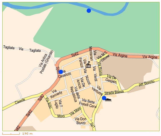 Infine, tornando sulla statale, si incrocia facilmente con via Cavallotti dove, attualmente al n.58, si trova il ristorante hotel "Brixellum" ("Brescello"), ma dove 23 anni fa, al momento delle riprese, si trovava l'officina meccanica di Peppone. Nel film si vede Peppone testare una Ferrari appena riparata e riportarla alla legittima proprietaria appunto in questa location.